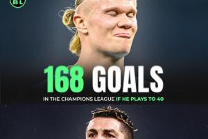 🤯再踢10年超过C罗?AI预测:哈兰德40岁时欧冠总进球168粒